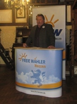 Ebenso äußerte sich der Initiator und Mitbegründer Sigi Nachtmann, der eine kurze Darstellung über der Geschichte der Freien Wähler und auch seines persönlichen politischen Werdegangs lieferte. So hat er sich im politischen Parteiengebilde nicht wirklich repräsentiert gefühlt und kam so auf die Idee, mit einigen Mitstreitern die Freien Wähler zu gründen. Das Ziel war es zunächst, die absolute Mehrheit der SPD zu brechen, was 2011 gelang. Nun sei es in der Bürgermeisterwahl auch erstmals gelungen, eine „bürgerliche“ Mehrheit zu erreichen.